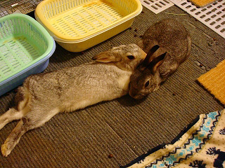 ということで一緒にブラシ。2うさとも色黒(笑)になるほどすっきり。
