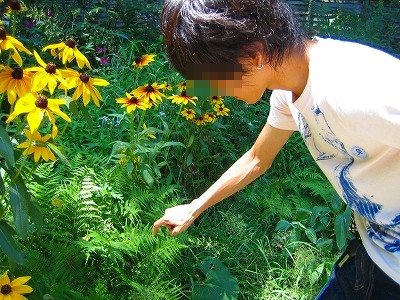 そして写真は、この手の草を見ると何でもオジギソウだと思ってすぐに葉っぱを触るベス氏。