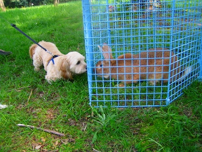 べるちゃんは暴走するのですもってぃ&ルーのケージに入れさせてもらいました。